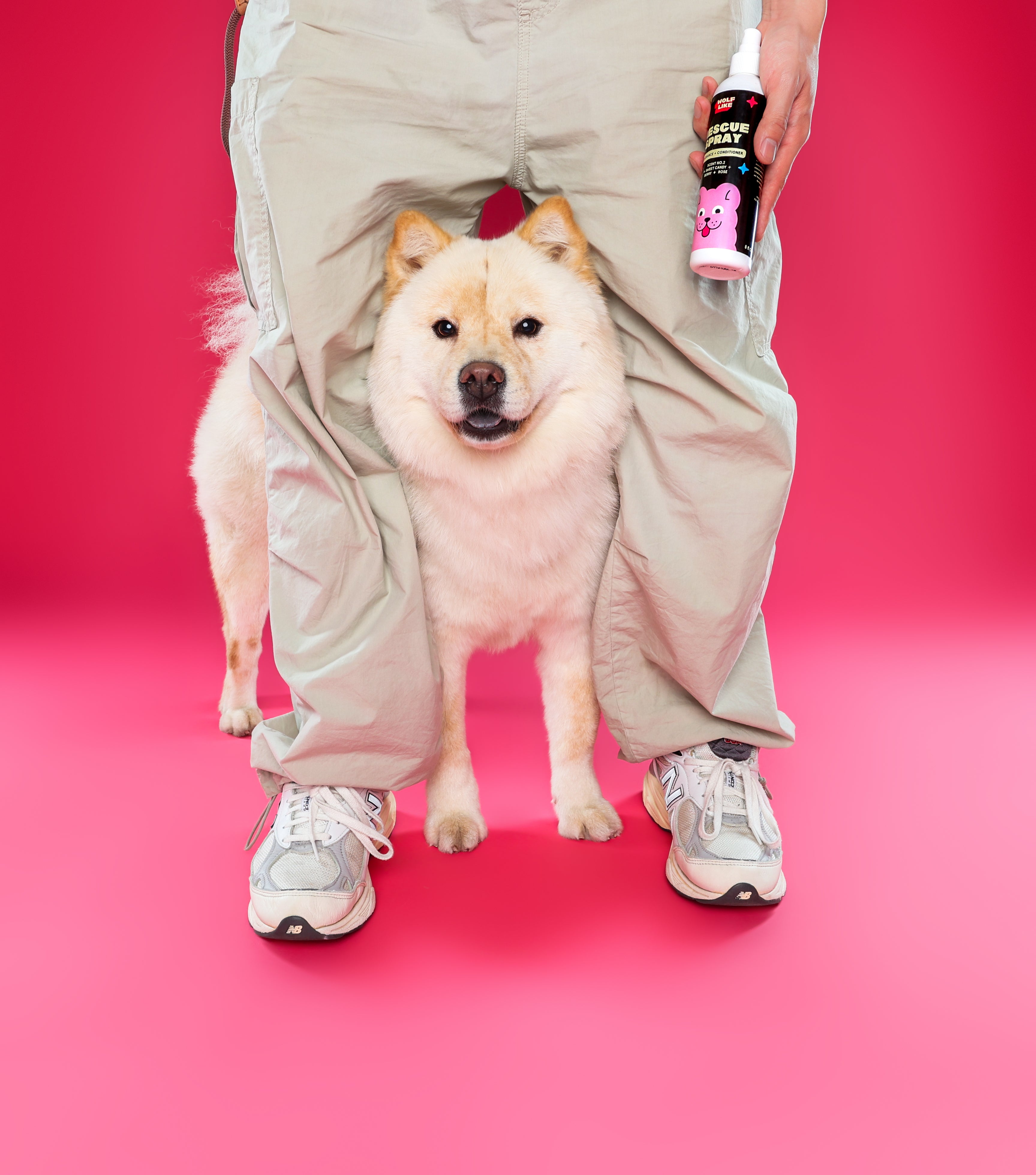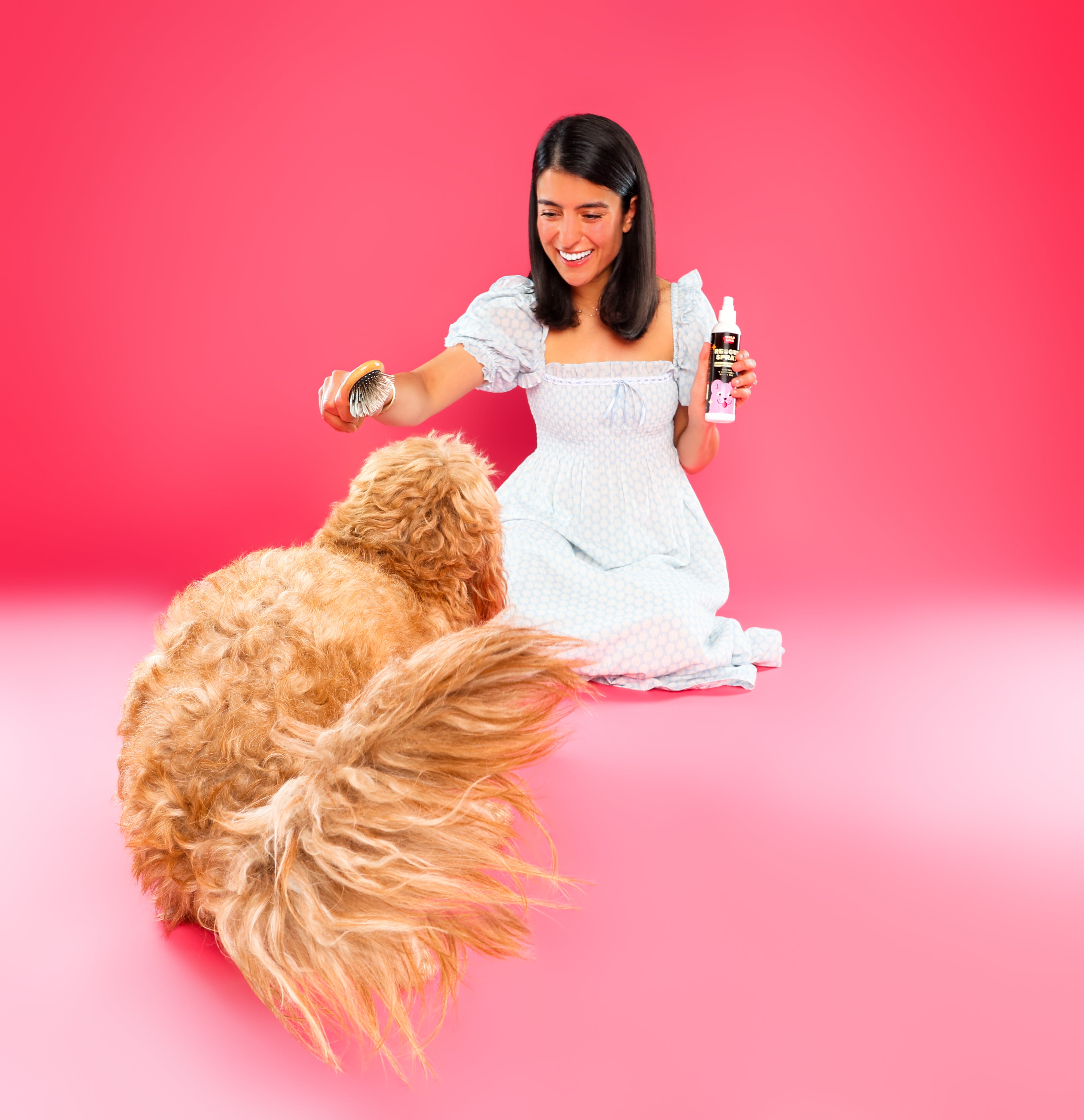 2. Spray directly into dry/damp hair or into your hands to massage product into fur.